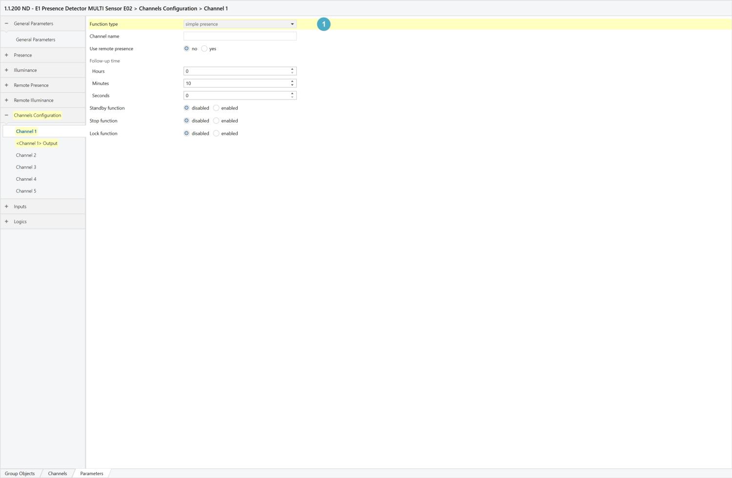 - Välj vilken konfiguration kanalen ska använda, på "function type:" välj "simple presence".