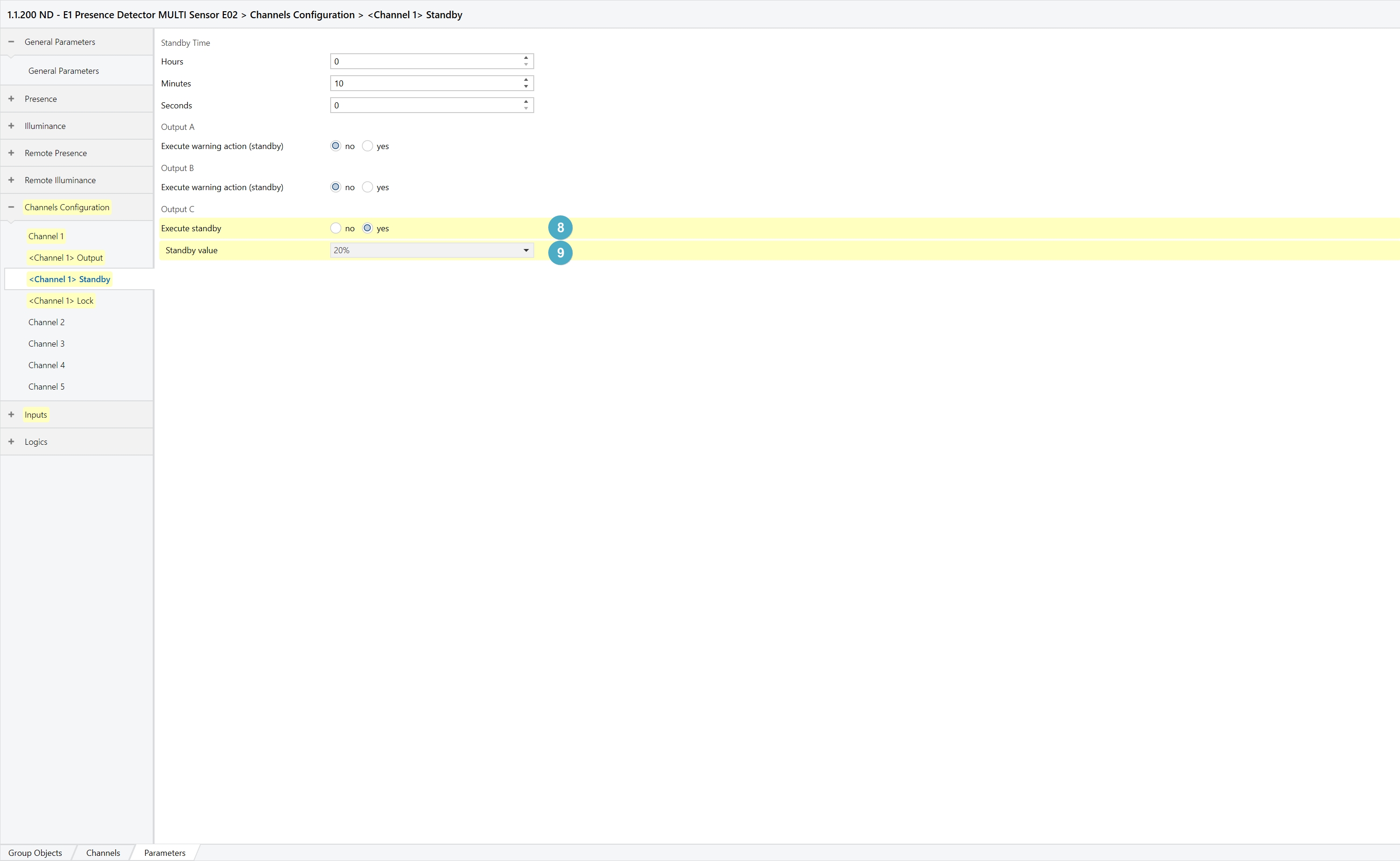 STEG 3: Channels Configuration / Channel 1 / Standby