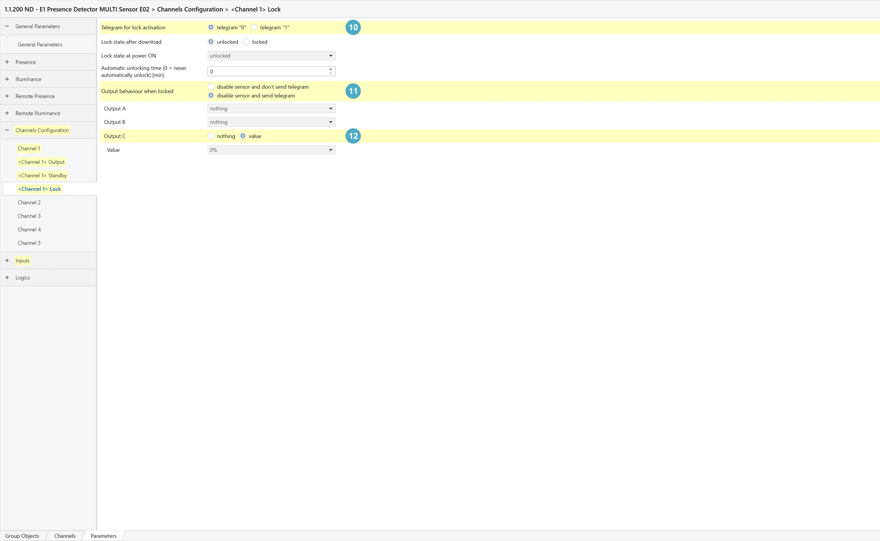 STEG 4: Channels Configuration / Channel 1 / Lock