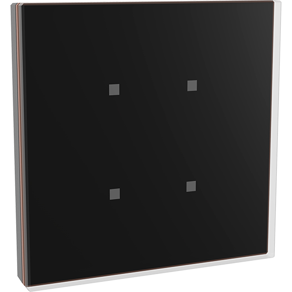 Dinuy PU-KNT-104 är en exklusiv kapacitiv KNX-tryckknapp med svart glasskiva, ram i kopparfinish och ultratunn design på endast 12 mm. Den har 4 beröringsytor med belysta ikoner (ej anpassningsbara) och ger flexibel styrning av belysning, solskydd och scener.